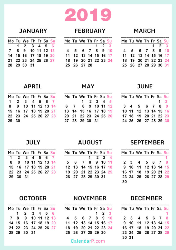 2019 Calendars• Calendars• Calendars 790x1120px• Calendars 790x1120px, Monday Start Printable Free 2019 Calendar, Blue, Pink – Monday Start 02/28/201902/28/2019