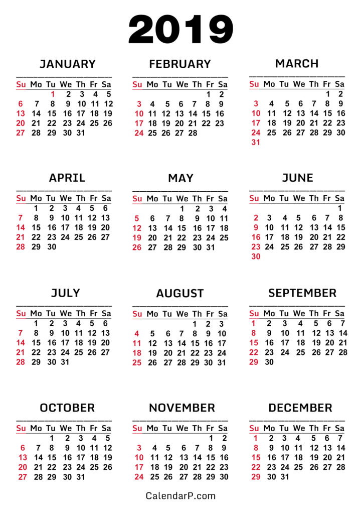 2019 Calendars• Calendars• High Resolution Calendars• High Resolution Calendars Sunday Start Printable Free 2019 Calendar, HD, White – Sunday Start 02/28/2019