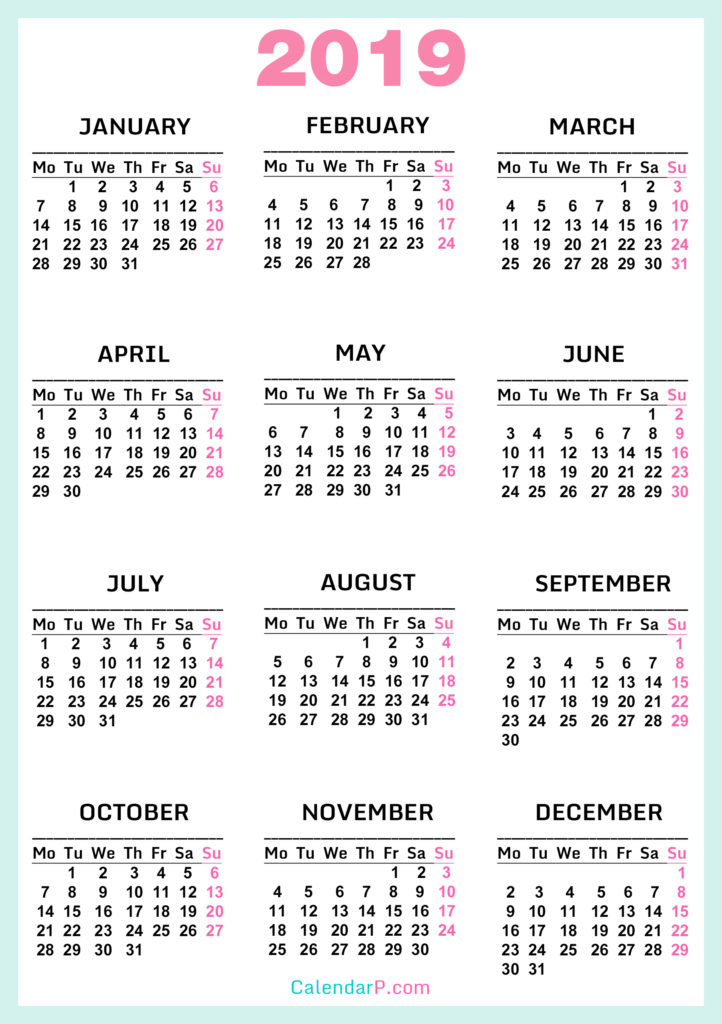 2019 Calendars• Calendars• High Resolution Calendars• High Resolution Calendars Monday Start Printable Free 2019 Calendar, HD, Blue, Pink – Monday Start 02/28/201902/28/2019