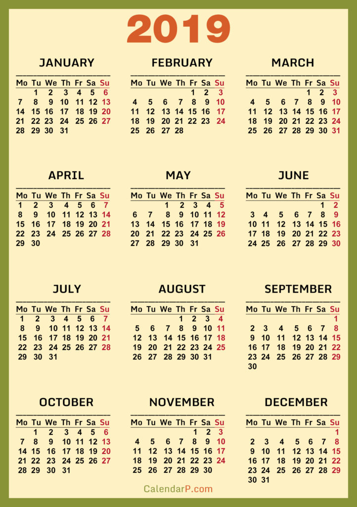 2019 Calendars• Calendars• High Resolution Calendars• High Resolution Calendars Monday Start Printable Free 2019 Calendar, HD, Green, Orange – Monday Start 02/28/201903/01/2019