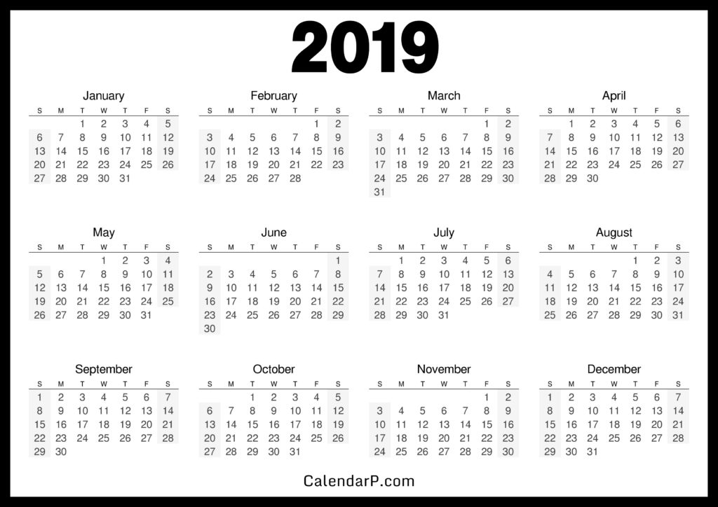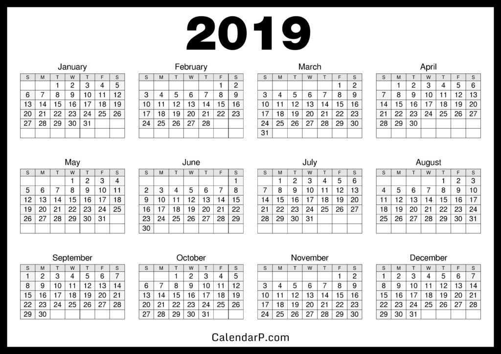 2019 Calendars• Calendars• Horizontal Calendars• Horizontal Calendars Sunday Start 2019 Calendar Printable Free, HD – Black, White 03/01/201903/01/2019