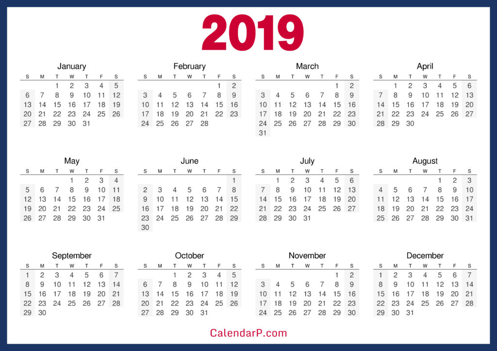 2019 Calendars• Calendars• Horizontal Calendars• Horizontal Calendars Sunday Start 2019 Calendar Printable Free, HD – Blue, Red 03/01/201903/01/2019